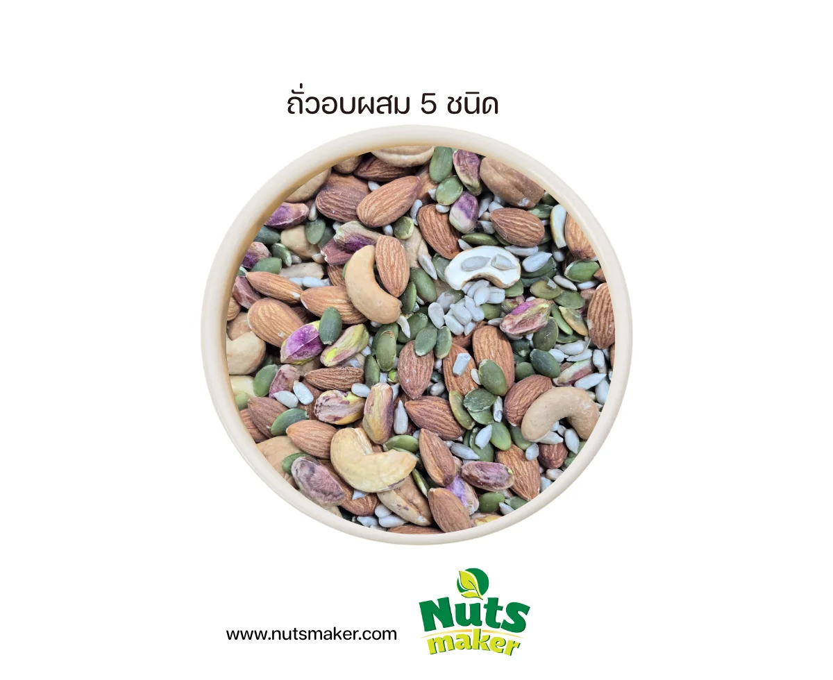 ส่วนประกอบ : อัลมอนด์ เมล็ดมะม่วงหิมพานต์ เมล็ดทานตะวัน เมล็ดฟักทอง พิสตาชิโอ